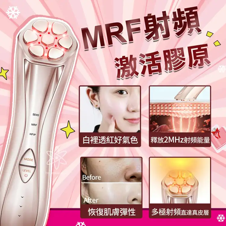 4周见证肌肤重回年轻态,全新升级院线级能量导入,射频+脉冲电流+远红外新形势结合抗初老,MRF射频+SEMS微电流+HFIP复合电脉冲叠加活性射频三种模式,红外光+远红外双重光学技术温热导入,省时省力效率更高同时护肤无死角