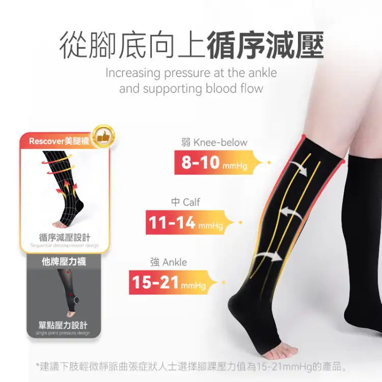 美國Rescover專業級長效舒適靜脈曲張美腿復原襪